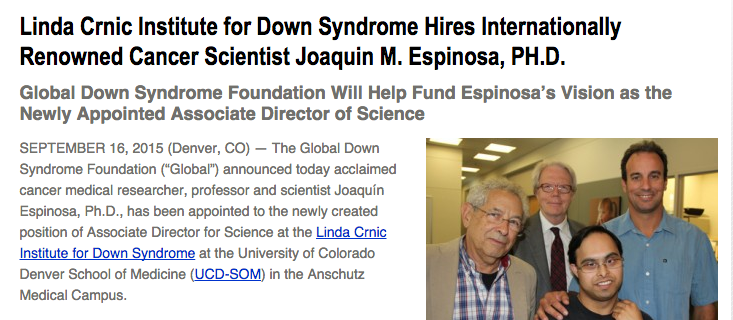 The Functional Genomics Facility is proud to announce that we are now offering a new gene panel. In light of our director (Dr. Joaquin Espinosa) becoming the Associate Director for Science at the Linda Crnic Institute for Down Syndrome, we now have the Human Chromosome 21 panel available for purchase. We hope this new panel will aid scientists in further researching Down syndrome and discovering treatments that will improve the quality of life for those affected by this condition.